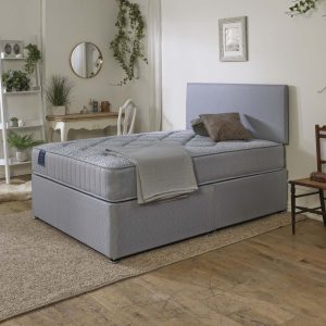 The Chelsea Orthopaedic mattress has a 12.5 gage open coil spring unit with hypoallergenic fillings and high quality polyester fillings with a grey quality damask fabric with a deep quilted finish. Medium to firm feel, two sided, turn and rotate regularly. Mattress depth 23cm. British made, sizes available 3′, 4′, 4’6, 5′. Also available as a divan set. Estimated delivery if out of stock 1 week.