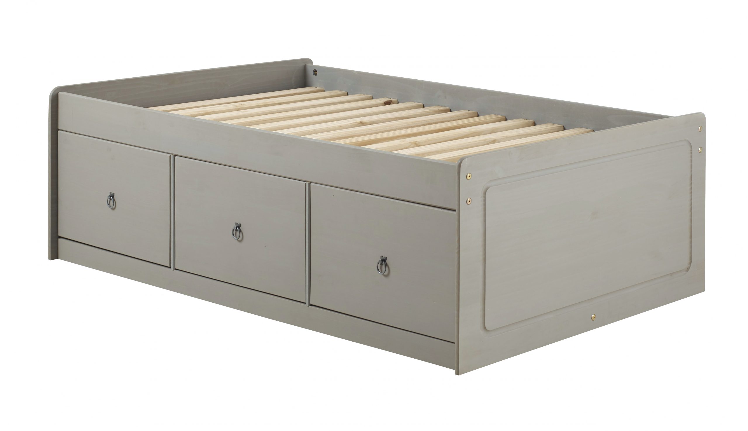 The Corona Painted collection is a popular choice, even more so in our grey or white washed wax finish. Retaining all the characteristics that Corona is renowned for, but in a subtle grey washed wax or white washed colouring that allows the natural grains and textures of the real wood to show through, 3 large built in storage drawers and solid pine slats. Made entirely from responsibly sourced South American Pine. Boxed for home assembly. Estimated delivery on this range is 1 week. Bed requires 90 x 190cm mattress.