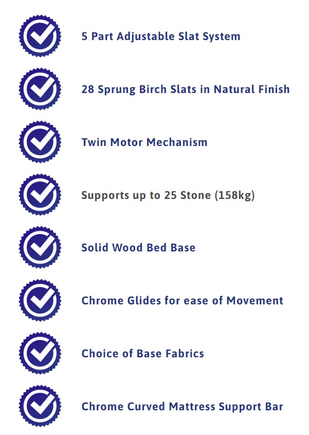 The Derwent adjustable bed has a pocket sprung mattress with 2.5″ air-lite comfort foam on top for additional comfort, medium/firm feel and non turn and tufted for a firmer feel and foam encapsulated for full edge to edge support for. Mattress depth approximately 25cm, choice of base fabrics and headboards to match ( 2’6 and 3′ headboards from £119 to match). British made with a 5 year motor guarantee. Sizes available 2’6, 3′, 4′, 4’6, 5′, 6′. (5′ and 6′ come as twin beds with two separate motors and controls). Estimated delivery if not in stock 2 weeks. We also do a FREE set up with every adjustable bed purchased.