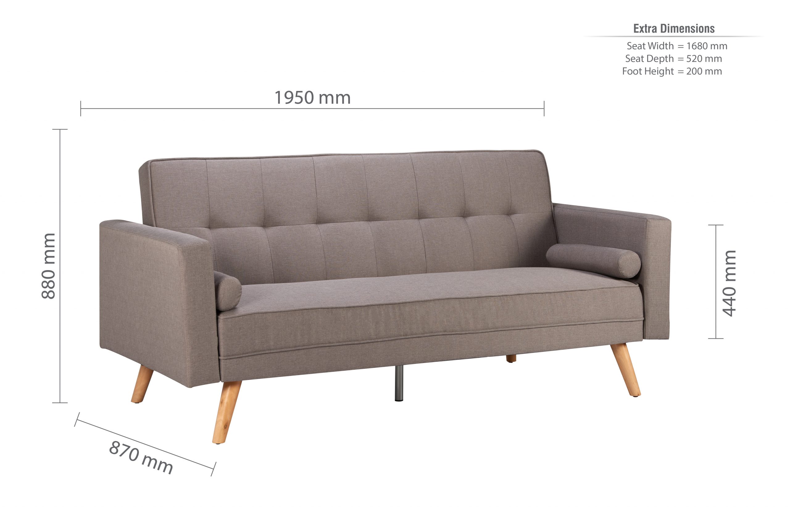 The Evan is a click- clack is a contemporary sofa bed that’s ideal for an occasional guest bed. Upholstered in a grey fabric with contrasting buttoned details and two matching loose cushions supplied gives this sofa bed a real retro feel. Maximum weight load is 250kg. Estimated delivery if not in stock 3 weeks.