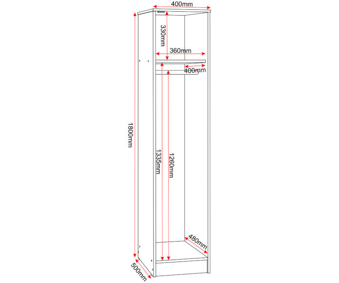 Sizes width 40cm, depth 50.5cm, height 180cm.