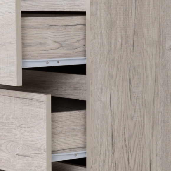 The Malvern is a sleek, simple style with the no handle style in an urban snow colour, a pale wood effect design. Made of composite board with MDF back panel, metal hinges and metal hanging rail, metal runners on drawers, a value for money bedroom range. Boxed for home assembly. Estimated delivery if not in stock 3-4 weeks.