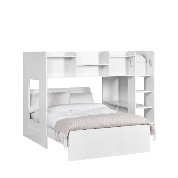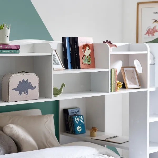 The Owen Midsleeper Bed has the perfect blend of style, functionality, and fun. This versatile piece features a cosy single bed perched above a small double bed, offering flexibility for sleepovers or extra lounging space. The built-in shelving , both inside and on the front, provides ample room to showcase decorative items, books, and toys, keeping your child’s room organised and vibrant. The sturdy ladder ensures easy access to the top bunk while adding a touch of modern design. Transform any room into a stylish haven of creativity and comfort. Available in white or dark grey. Mattresses sold separately. Boxed for home assembly. Estimated delivery if out of stock 2 weeks.