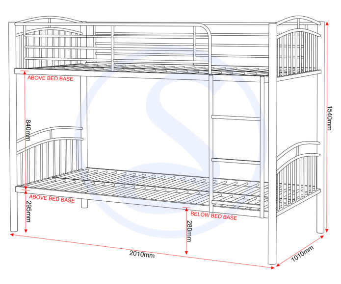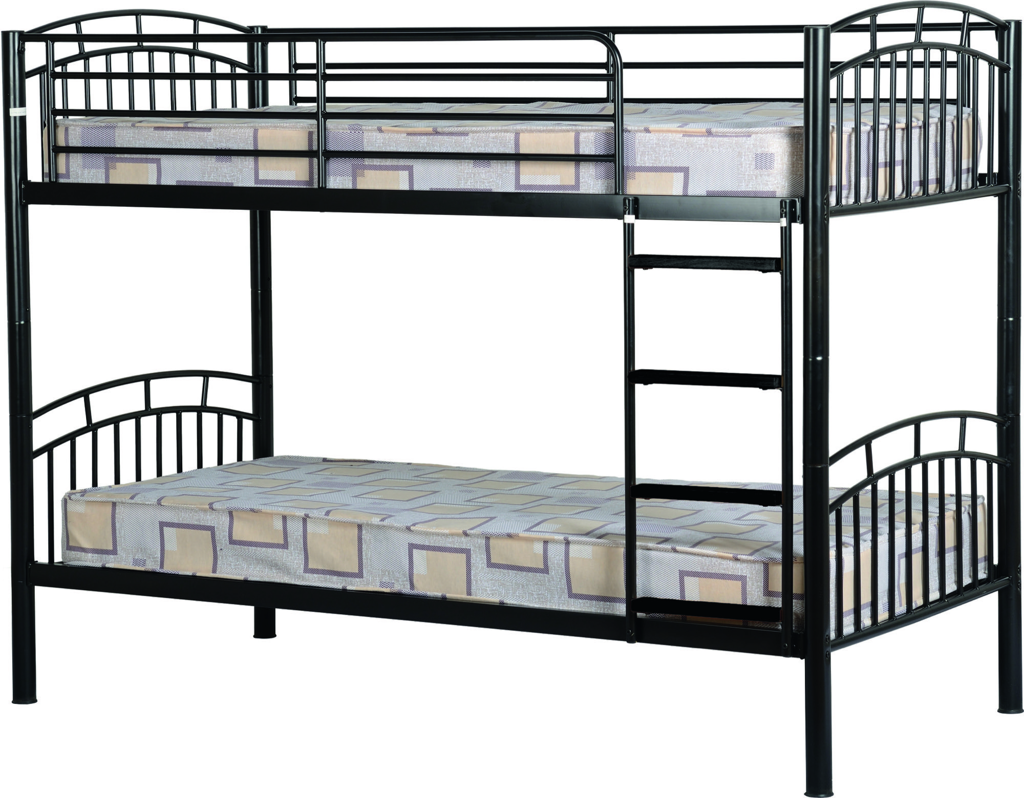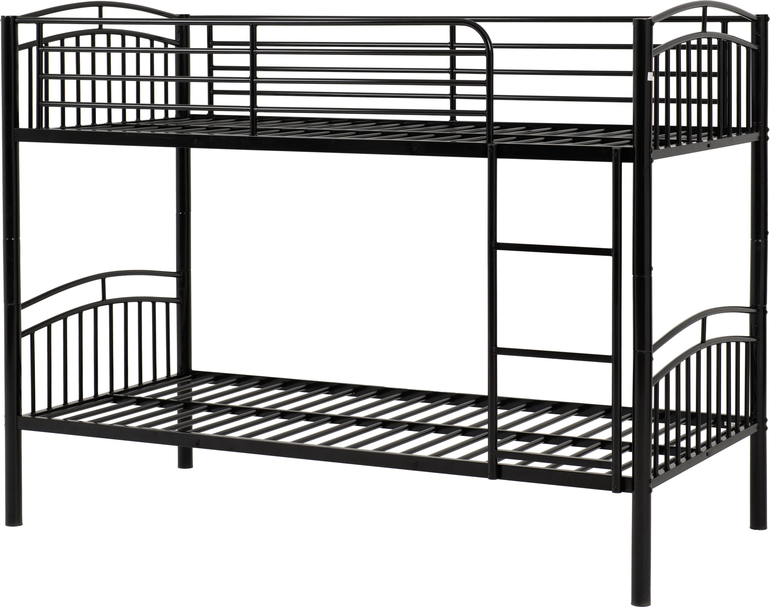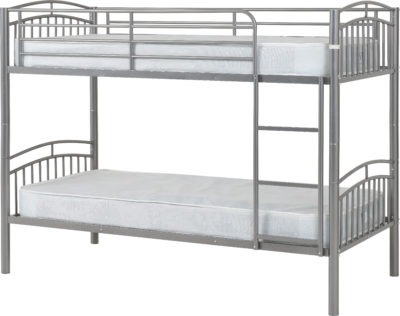 The Ventura metal bunk bed is available in silver or black finish, the bunk has heavy duty metal base with centre support bar as well, 50mm tube posts, the bunk van be split into 2 single beds. Requires 2 x 90 x 190cm mattresses. Boxed for home assembly.