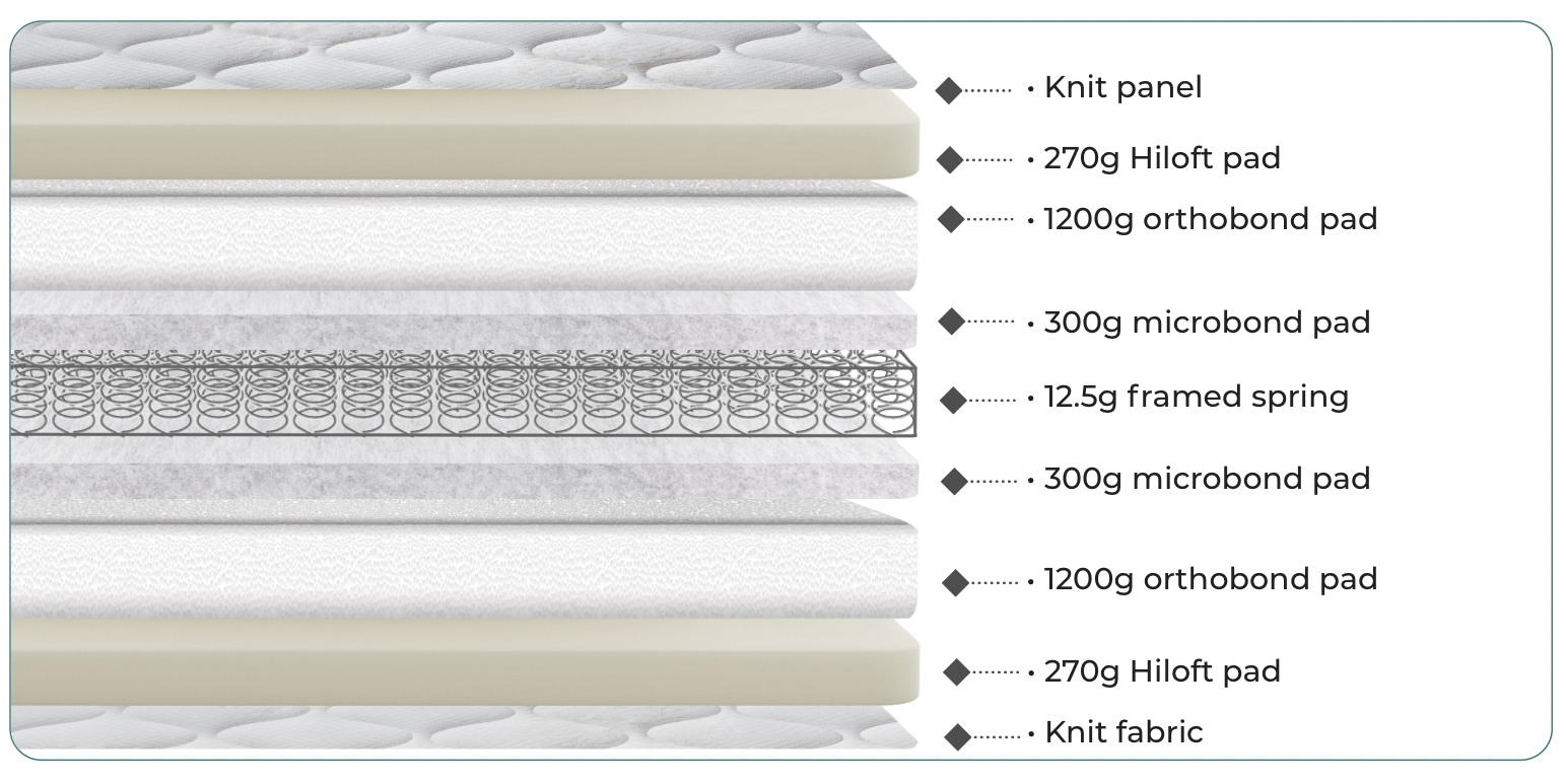 The Verdi Pledge is in our Landmark collection where the components are responsibly sourced using many recycled elements making the product more recyclable at the end of its life to make beds better for the environment. The mattress features foam- free fillings and sleep surfaces made from eco-friendly sustainable fabrics. The mattress has an open coil orthopaedic 12.5 gage spring system, eco friendly fillings free from chemicals with sustainability at the forefront and 100% recyclable at the end of use. The mattress features a coordinated border manufactured from the same sustainable fabric as the bases affording the bed a luxurious look and feel. The Landmark base comes with a choice of 6 fabulous 100% GRS certified 100% recycled base fabrics. The GRS standard applies to the full supply chain and addresses traceability, environmental principles, social requirements, chemical content and labelling. The benefit of GRS fabrics will feature 94% less water use, 59% less energy use and 32% less CO2 emissions in the process. To keep the sustainable story, all Landmark bases and headboards feature FSC Certified wood. Available in sizes 4’6, 5′, 6′, colours silver, mika, charcoal, moss, rose and cream. Mattress is double sided with a knitted top and soft tufts, mattress depth 32cm. Matching headboard also available.